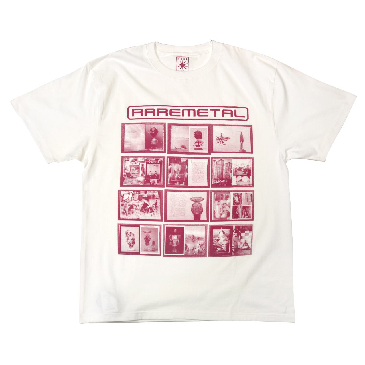 アートディレクター永⼾鉄也のプロジェクトRAREMETAL 1st zineの全ページをデザインとして落とし込んだプリントTシャツ。
