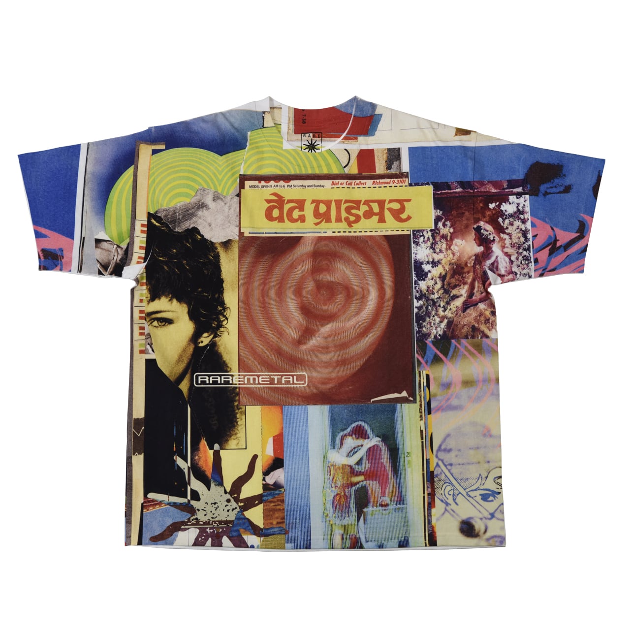 自分のコラージュは表面に見える完成に辿り着くまでに、何層も貼り込んだ見えない層を作りながら進んでいく。はじめに下地を貼る,その上から色やイメージをたぐるように貼り進めてゆく。そして何かのきっかけで貼ってきたものをヘラで剥がしたり、また剥がした部分に影響されたりしながら張り進んでゆく。この作業を繰り返していく過程で気になる瞬間や、部分をマクロレンズで撮影する。この未公開の写真を使うことがレアメタルを始めるきっかけとなった。