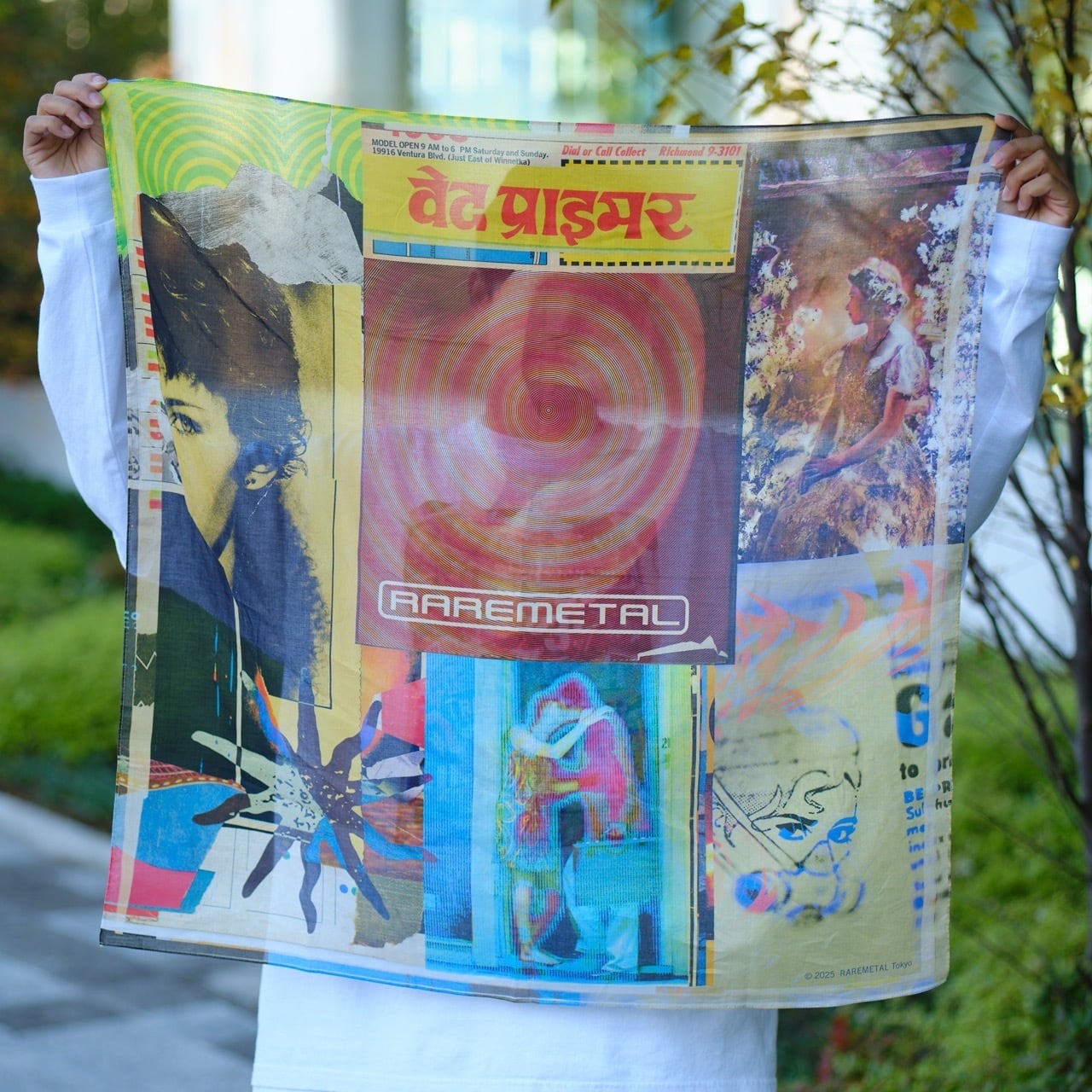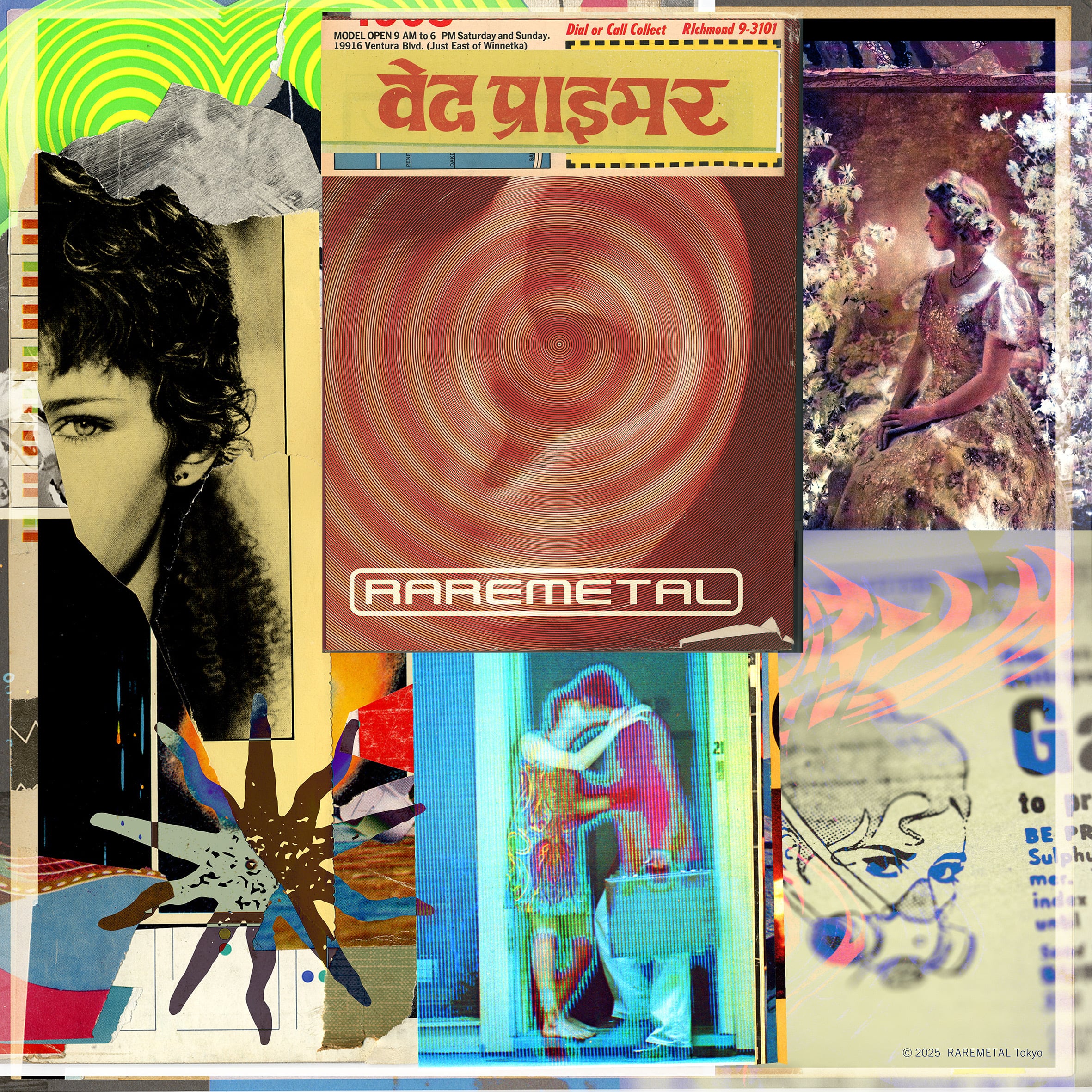 自分のコラージュは表面に見える完成に辿り着くまでに、何層も貼り込んだ見えない層を作りながら進んでいく。はじめに下地を貼る,その上から色やイメージをたぐるように貼り進めてゆく。そして何かのきっかけで貼ってきたものをヘラで剥がしたり、また剥がした部分に影響されたりしながら張り進んでゆく。この作業を繰り返していく過程で気になる瞬間や、部分をマクロレンズで撮影する。この未公開の写真を使うことがレアメタルを始めるきっかけとなった。