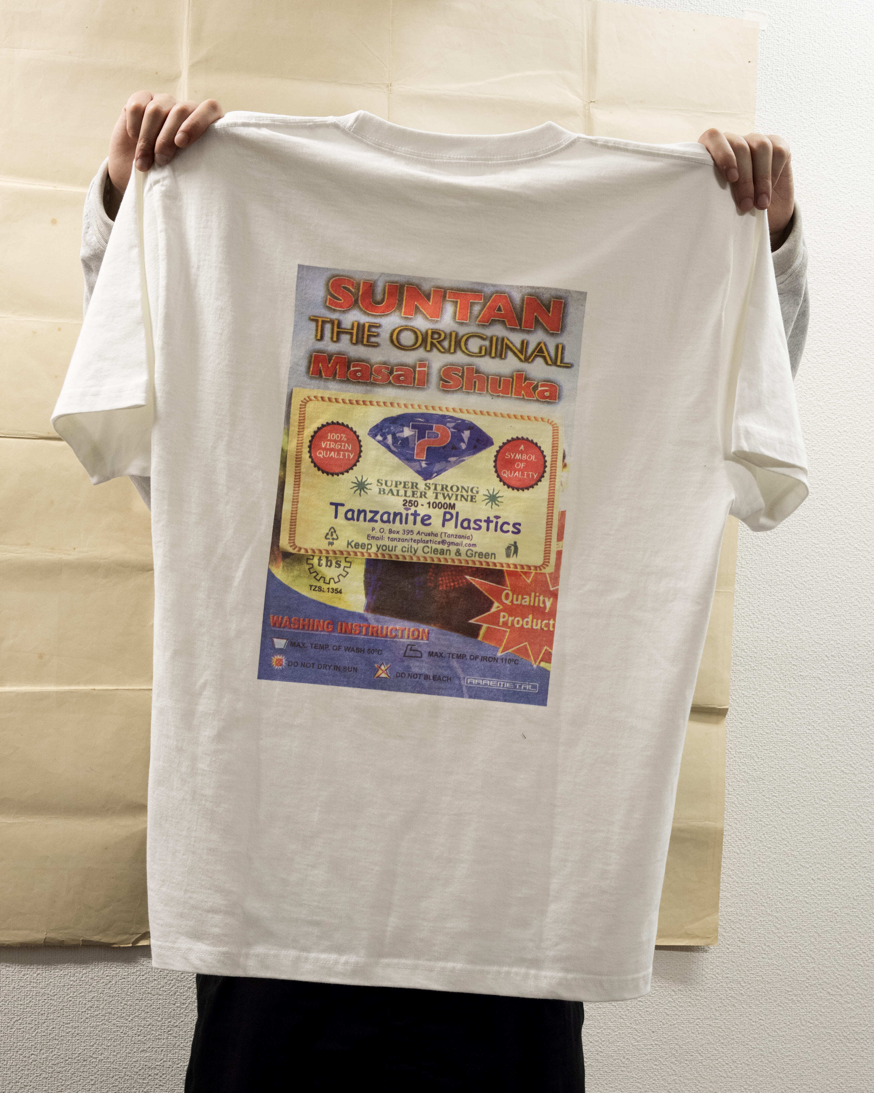 ・アフリカ、ケニヤの紙ごみをコラージュしてインクジェットでバックプリントしたTシャツ